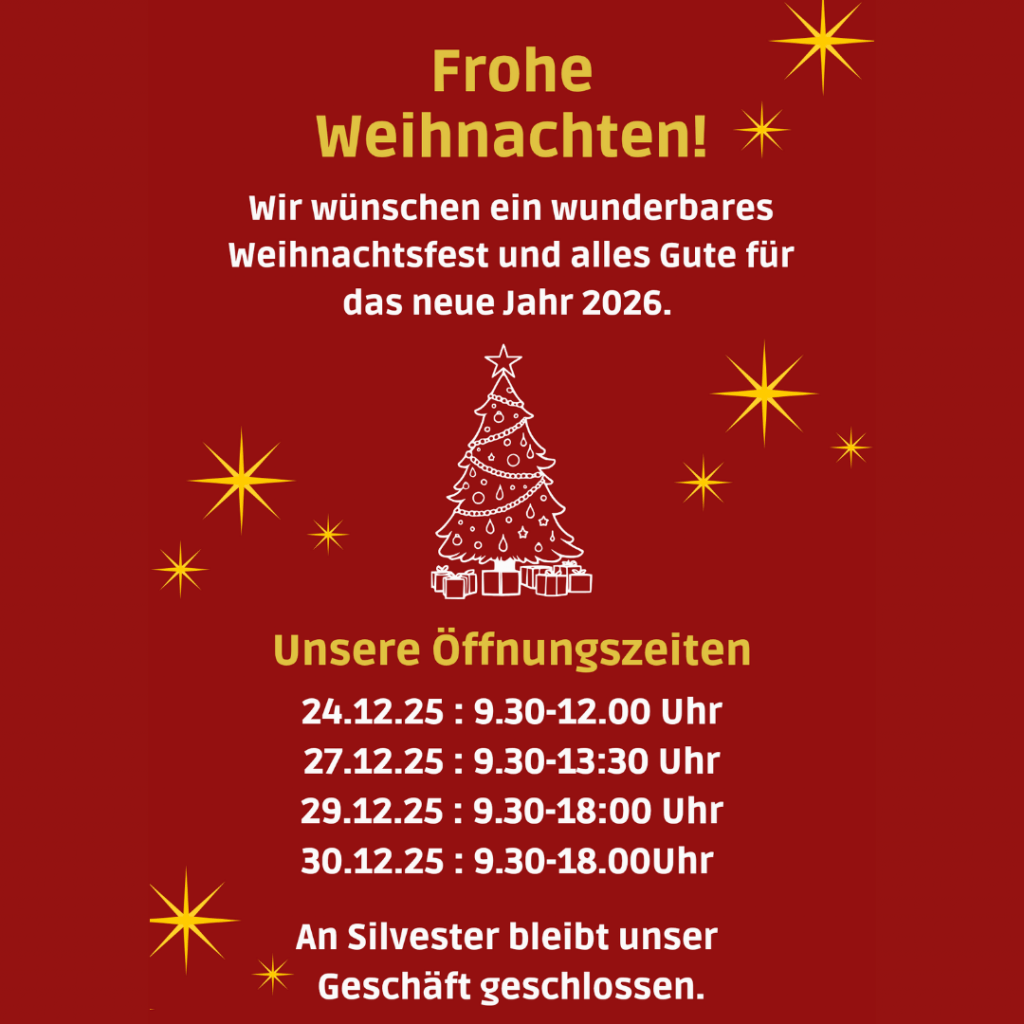 Weihnachten und Silvester, Zeit um „Danke“ zu sagen: Für ein besonderes Jubiläumsjahr, nette Begegnungen, freundliche Worte und schöne Momente. Wir wünschen allen Kunden, unseren Mitarbeitern und Kollegen, dem Team Stadtmarketing und allen, die uns in diesem Jahr begleitet haben, ein wunderbares Weihnachtsfest und viel Glück und Gesundheit für das Jahr 2026.